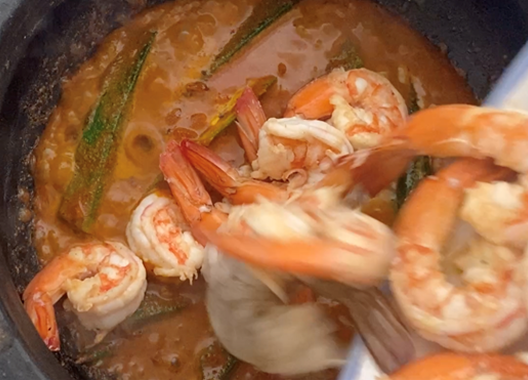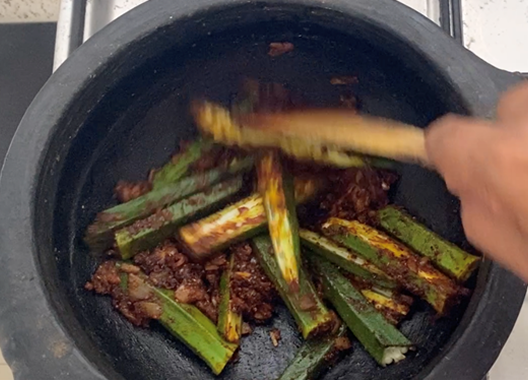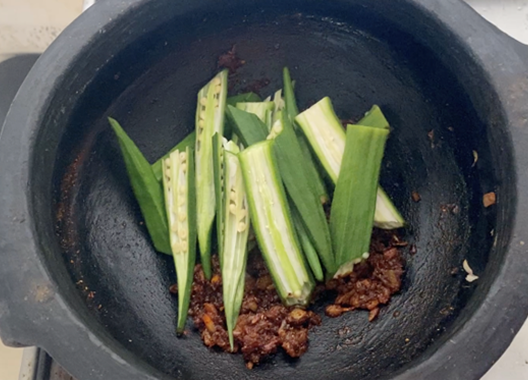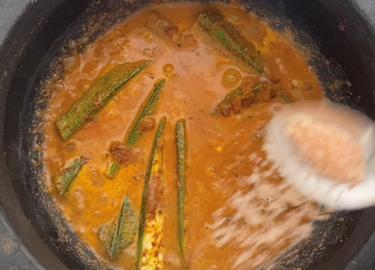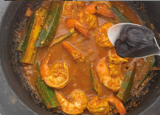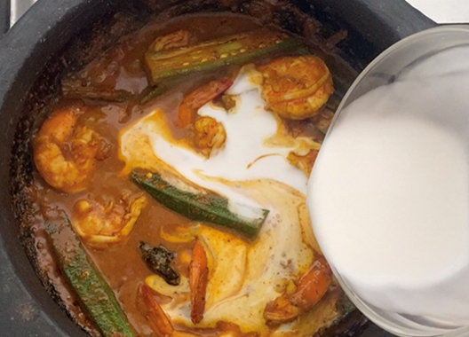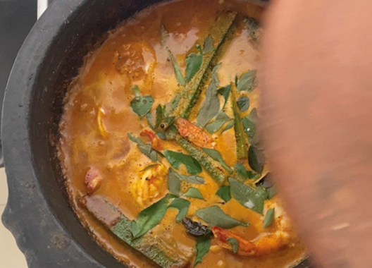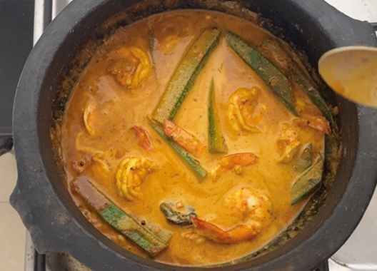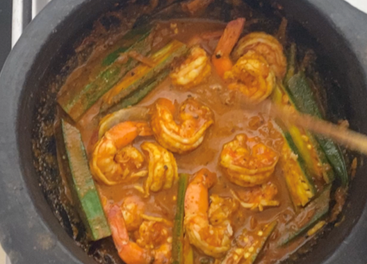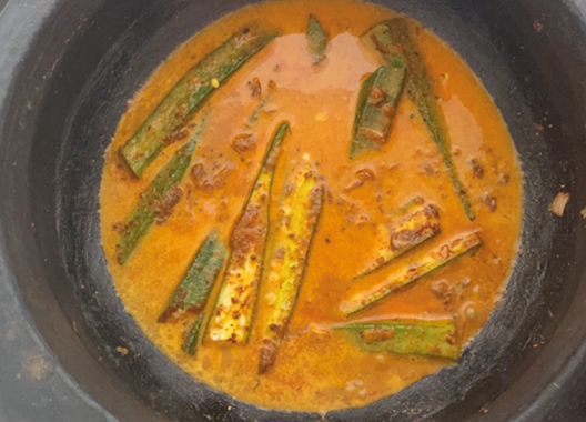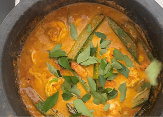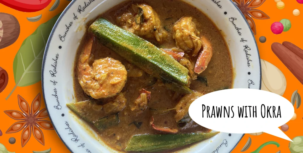 The recipe of the classic Goan dish Prawns with Okra is from Sangita Naik from the Hindu community of Marlem, an area of Fatorda, and is almost a daily fare in her family. This recipe is handed down to her from her grandmother.