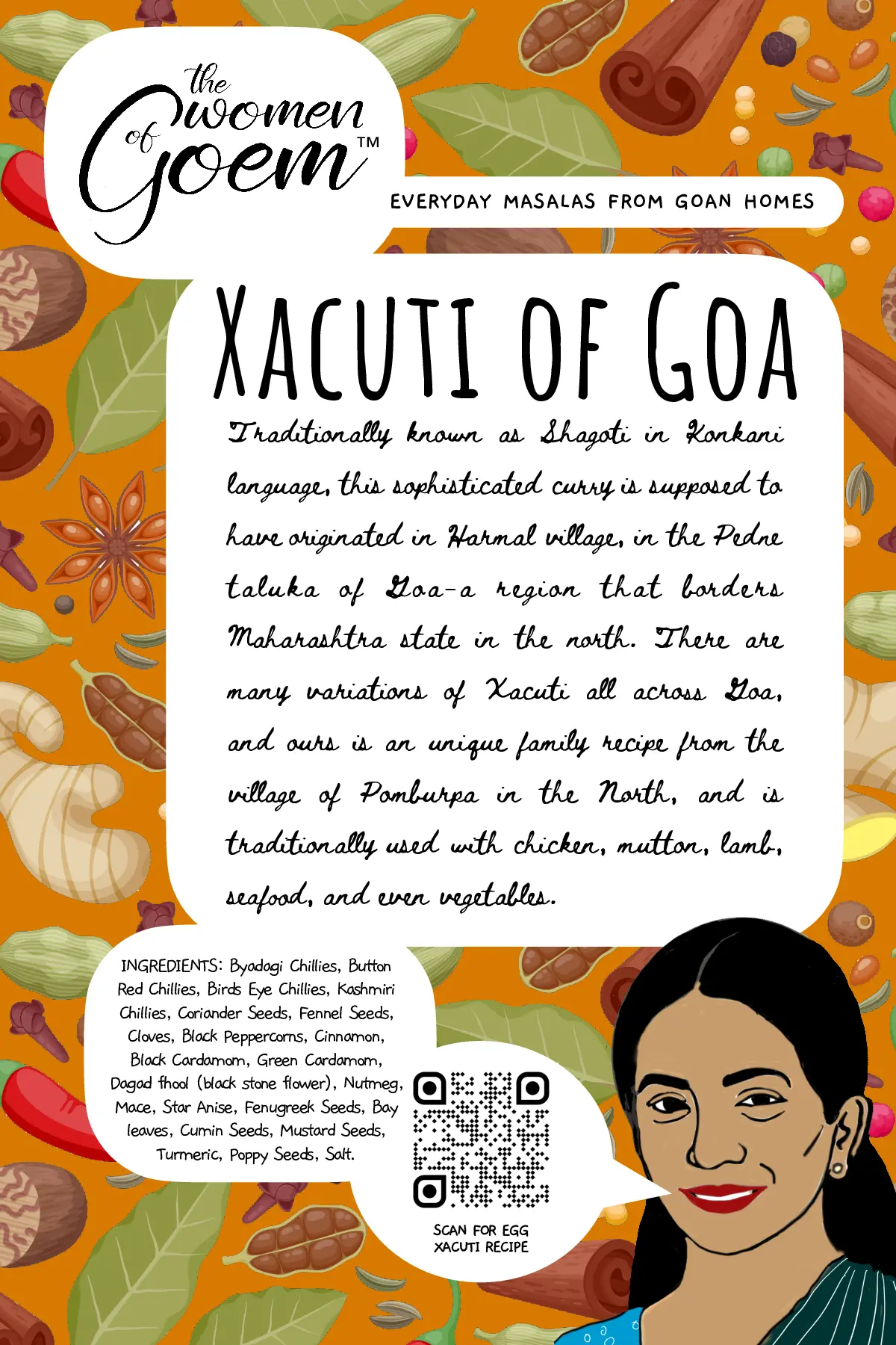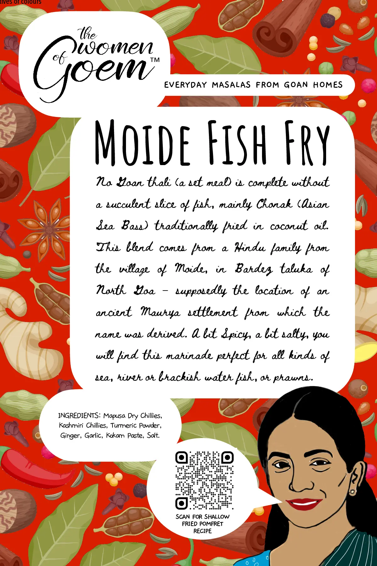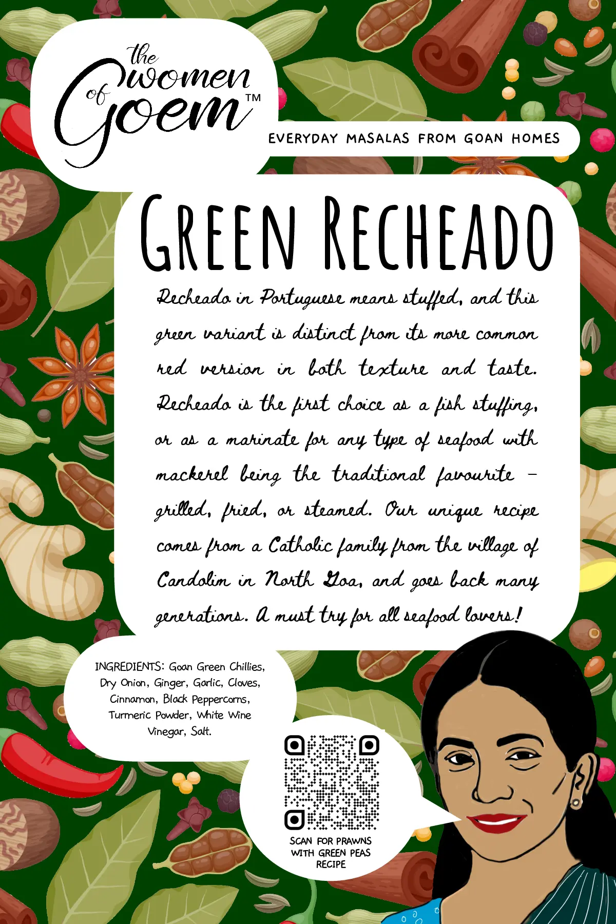 When it comes to cooking tisryo (clams) or kurlya (crabs), perhaps nothing could beat this masala, a traditional classic from the Kunbi tribe – believed to be the original inhabitants of Konkan. This ancient masala recipe is from the community based in Salsette, another name for South Goa. Even after many centuries, they have kept their folk identity, tradition and culture to this day, offering us the opportunity to relish the distinct flavour and taste of their cuisine. This masala though traditionally used for shellfish, compliments other types of seafood as well.