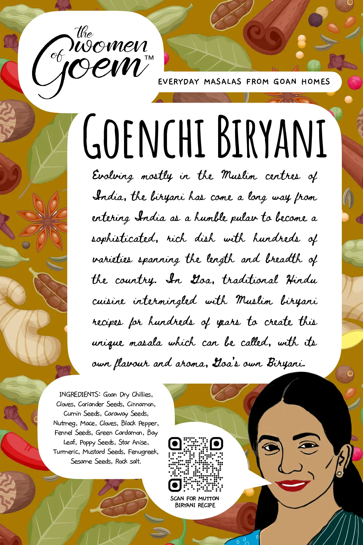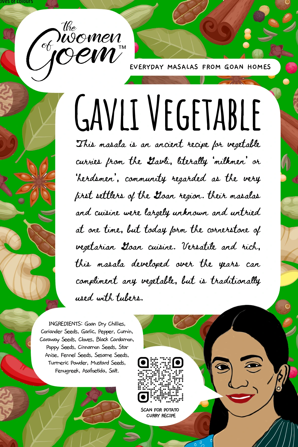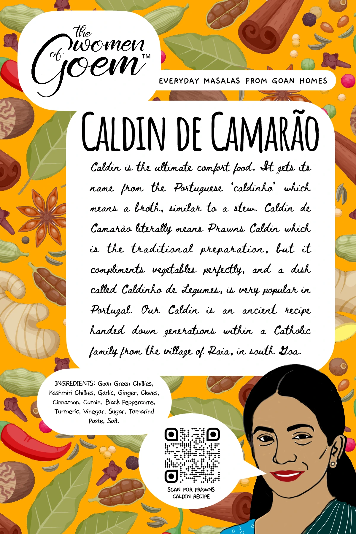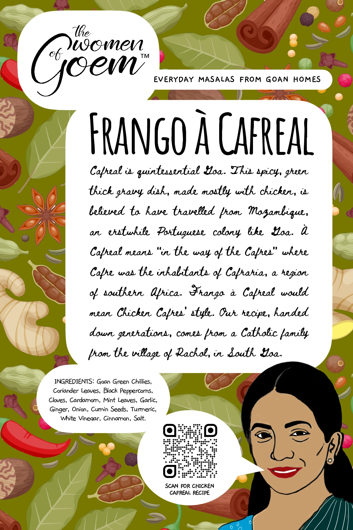 When it comes to cooking tisryo (clams) or kurlya (crabs), perhaps nothing could beat this masala, a traditional classic from the Kunbi tribe – believed to be the original inhabitants of Konkan. This ancient masala recipe is from the community based in Salsette, another name for South Goa. Even after many centuries, they have kept their folk identity, tradition and culture to this day, offering us the opportunity to relish the distinct flavour and taste of their cuisine. This masala though traditionally used for shellfish, compliments other types of seafood as well.